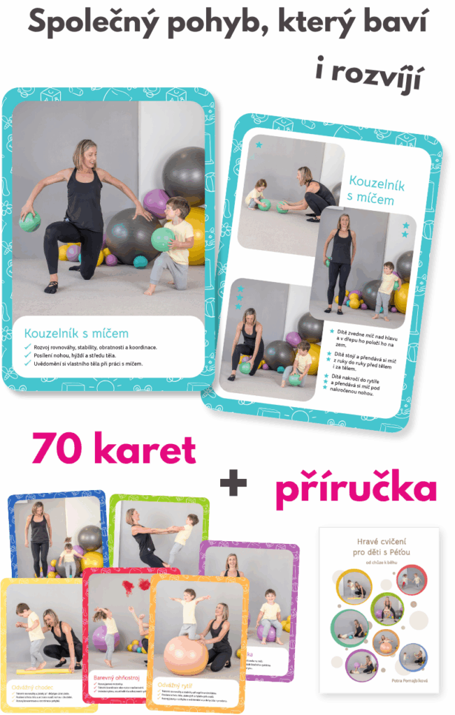 Soubor 70 autorských karet a doprovodné příručky přináší inspiraci, jak s dětmi rozvíjet sílu, rovnováhu, stabilitu i jistotu v pohybu – hravě, s radostí a v souladu s jejich vývojem.
